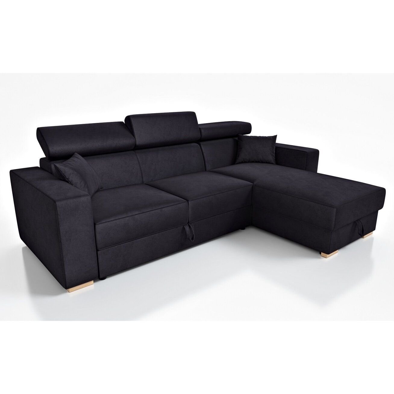 - Juoda|Mėlyna| Su miegojimo funkcija (208×130 cm) ir patalynės dėže.